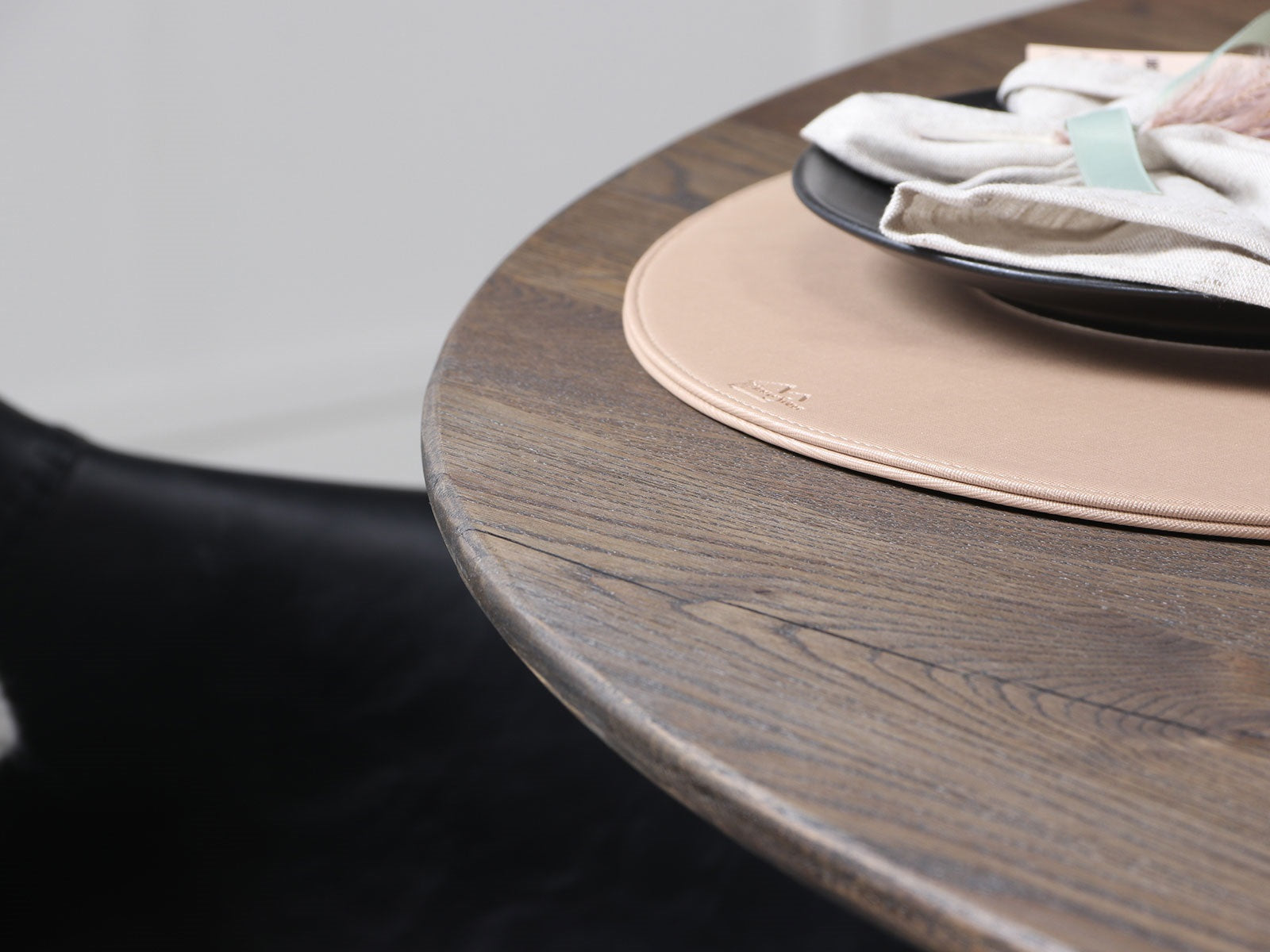 FSC-sertifioidusta massiivitammesta valmistettu kansi on saatavilla kahdessa halkaisijassa: 150 cm ja 180 cm, mikä mahdollistaa täydellisen sopivuuden erilaisiin ruokailutiloihin.