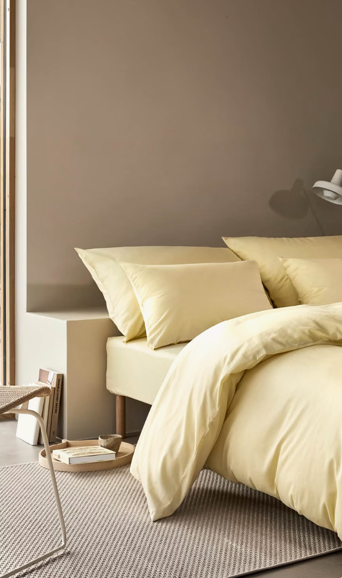 Hoie Harmoni ‑pussilakanasetti keltaisessa sävyssä tarjoaa makuuhuoneeseesi luonnollisen ja piristävän kesäsävyn, joka virkistää silmää illasta toiseen. Kankaana on kivipesty mattasatiini, jota pidetään Hoien kaikkien aikojen pehmeimpänä satiinikankaana. Sen mattapintainen viimeistely luo raikkaan ja hillityn ulkoasun, joka toimii tyylikkäästi niin modernissa kuin klassisessakin sisustuksessa.