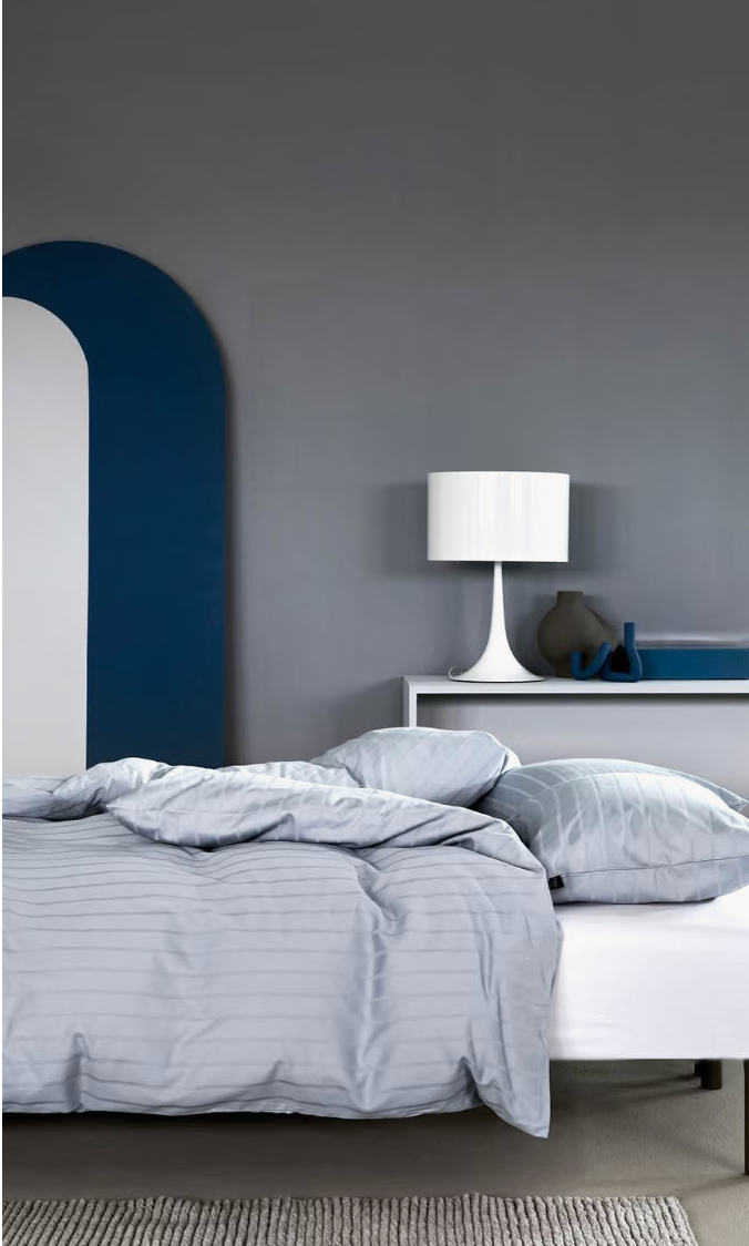 - Minimalistinen design – hillitty raidoitus ja satiinimainen kiilto tuo makuuhuuoneeseen ylellistä ilmettä