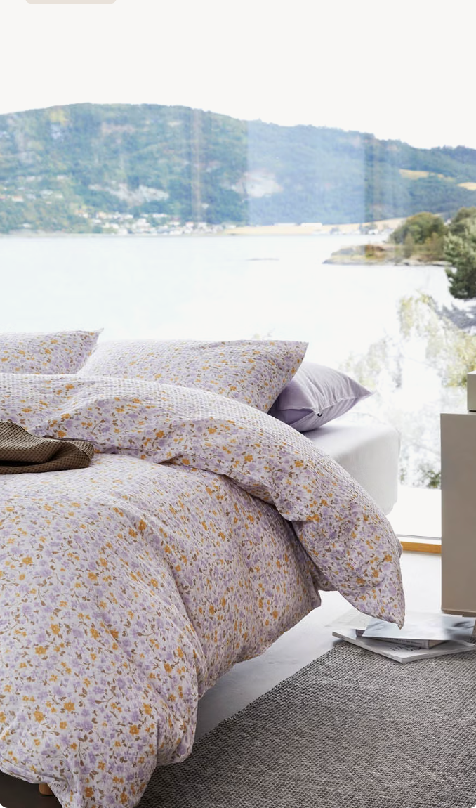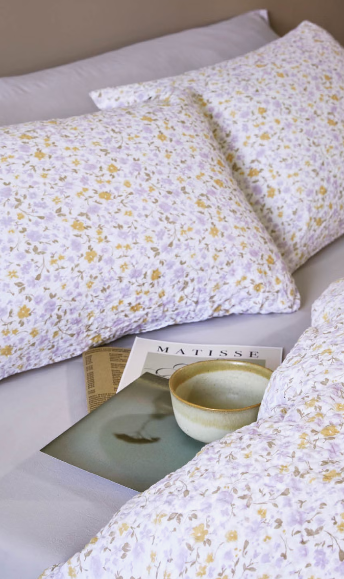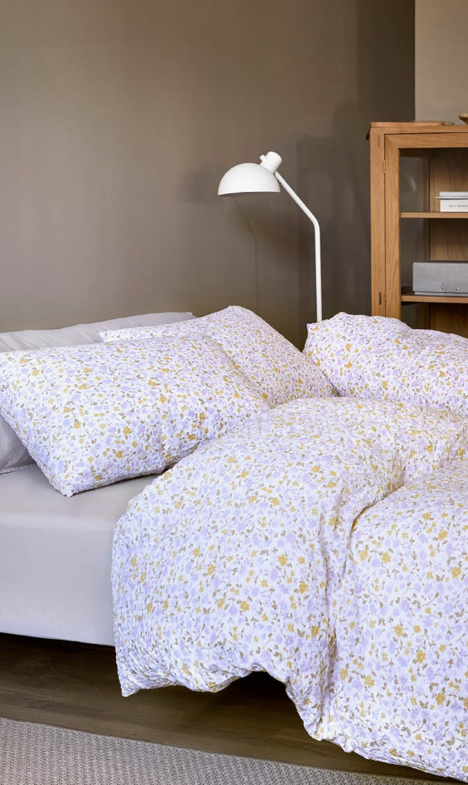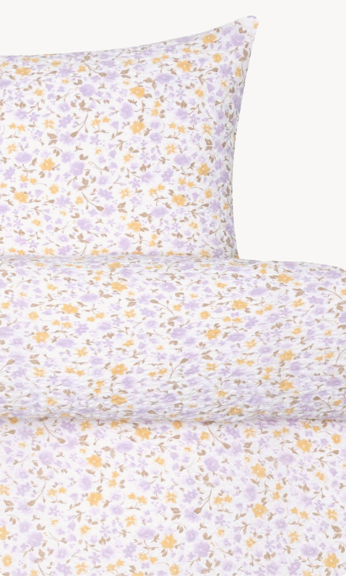 Pehmeä ja ilmava kreppirakenne tarjoaa nukkujalle miellyttävän viileän ja kesäisen tuntemuksen. Lakanan laventelinvärinen ja kukoistava kuosi viimeistelee iloisen ja aurinkoisen tunnelman!
