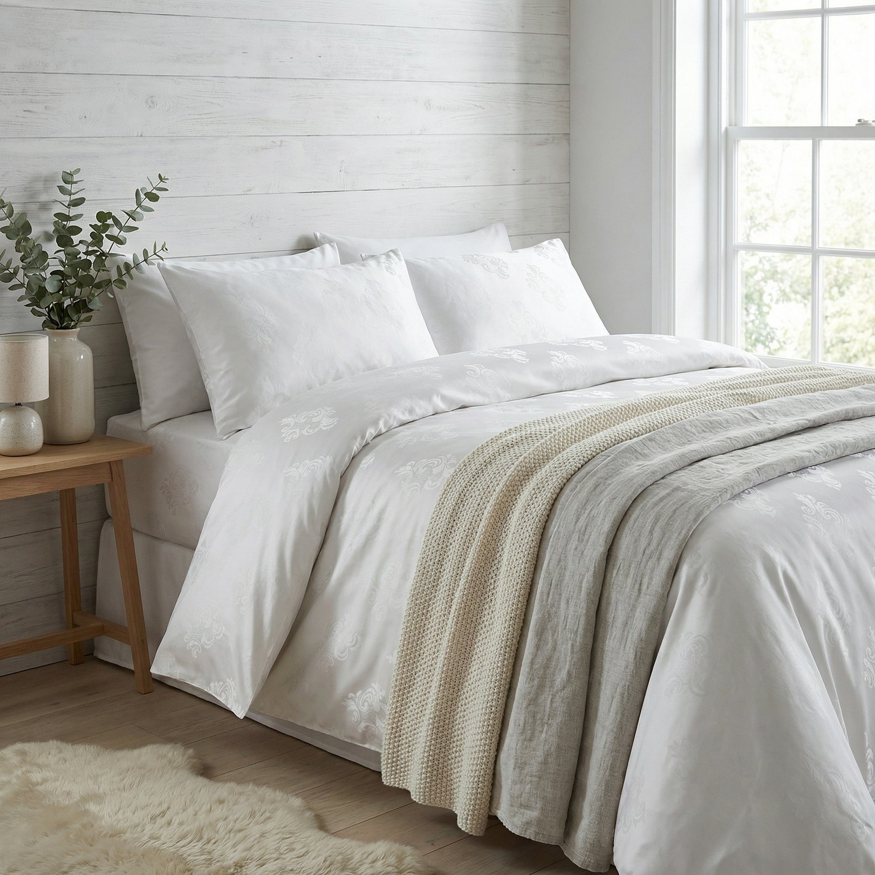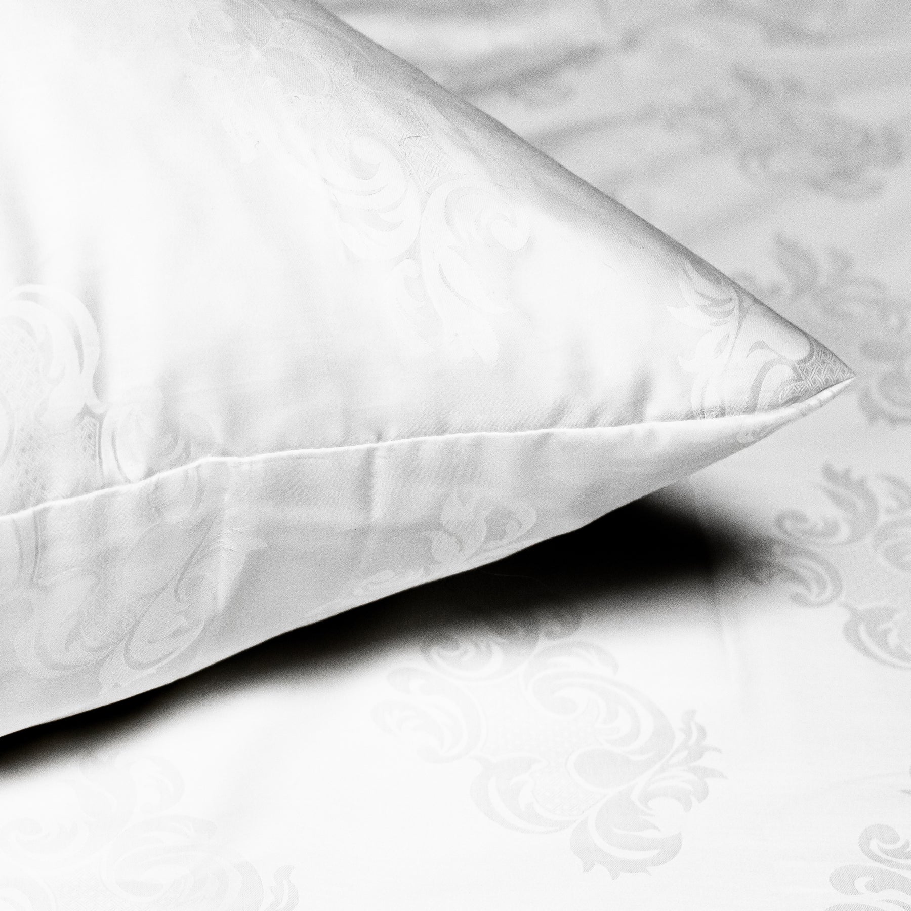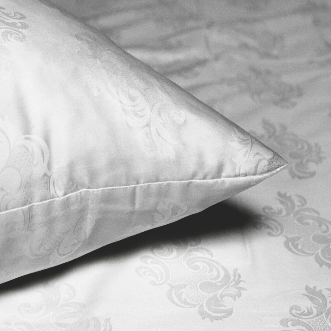 Excelsior-tyynyliinassa on upea juhlallisen valkoinen väri, kudottuna tyylikkäillä, klassisilla kuvioilla. Tällä kuosilla voit melkein tuntea nukkuvasi eurooppalaisen linnan tornihuoneessa…