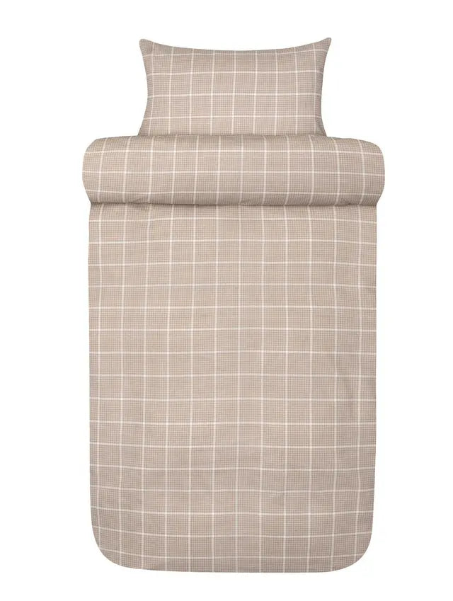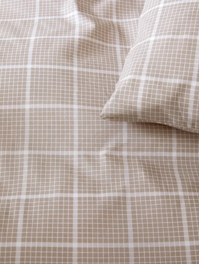 Hoie Eddie -pussilakanasetti beigessä sävyssä yhdistää pehmeän hiekan sävyn ja hienovaraisen ruutukuvion harmoniseksi kokonaisuudeksi. Setti sopii täydellisesti makuuhuoneisiin, joissa arvostetaan rauhallista tunnelmaa, ajatonta muotoilua ja laadukkaita materiaaleja.