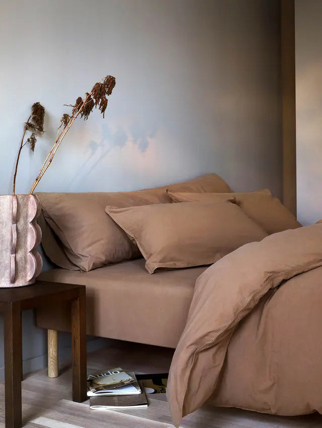 Syksyisen ruskea väri luo makuuhuoneeseen rauhoittavan ja harmonisen tunnelman, unohtamatta luonnonläheisyyttä. Tuotteen 100% luomupuuvilla on tunnettu puhtaudestaan ja erinomaisesta kestävyydestään, tuntuen samalla iholla erittäin pehmeältä ja miellyttävältä.