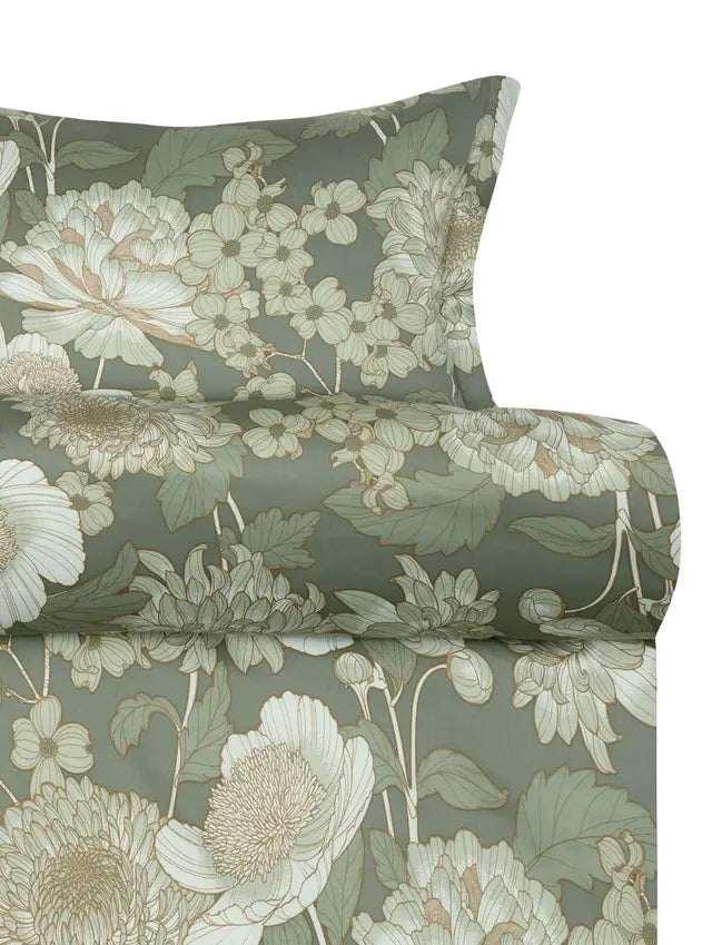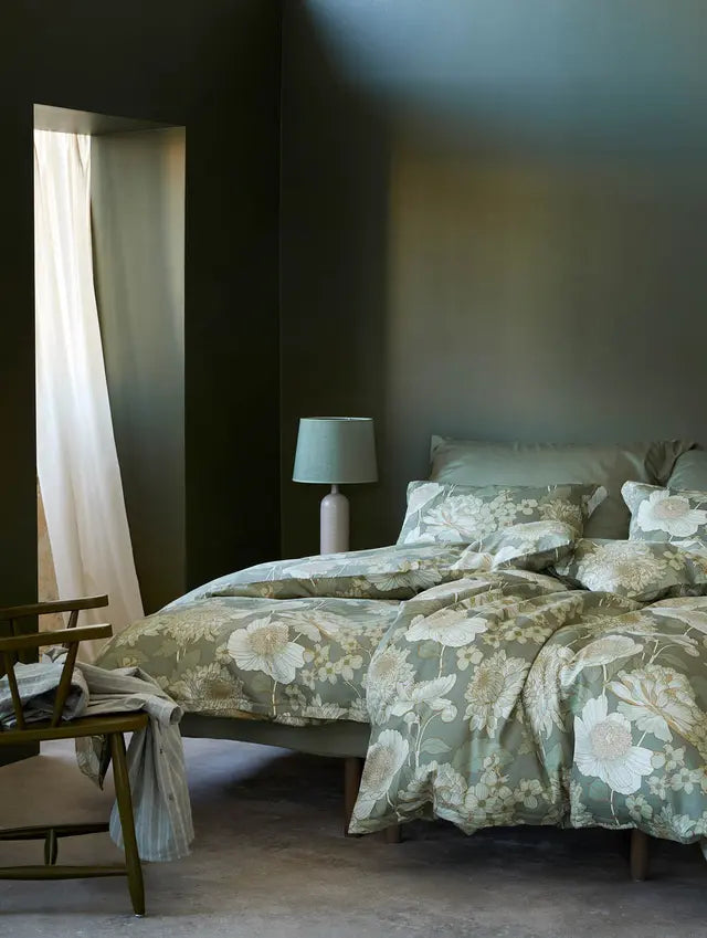 Hoie Isabell -satini­pussilakanasetti vihreässä sävyssä luo makuuhuoneeseesi harmonista tunnelmaa yhdistämällä silkkisen kiiltävän satinipinnan ja hellän kukkakuosin. 100 % puuvillasatiinista valmistettu kangas tuntuu iholla kevyeltä ja ylellisen pehmeältä. Elegantti kukkakuosi tuo makuuhuoneeseen ripauksen rohkeutta ja näyttävyyttä.