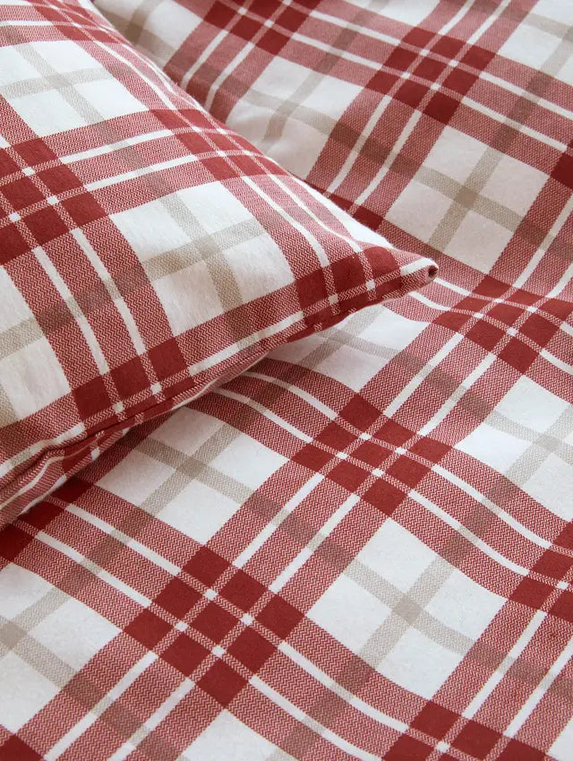 Hoie Lukas – Lämmin flanellinen pussilakanasetti klassisen jouluisella ruutudesignilla.
