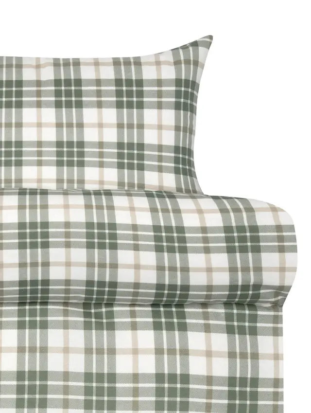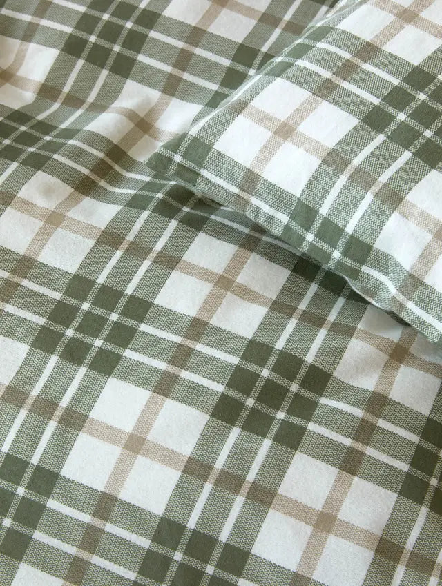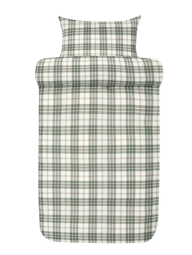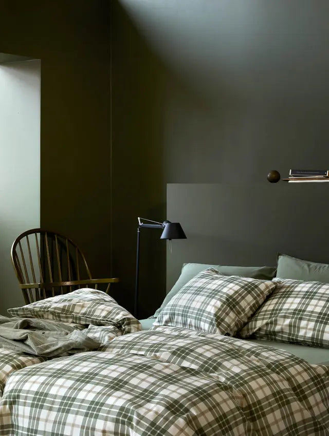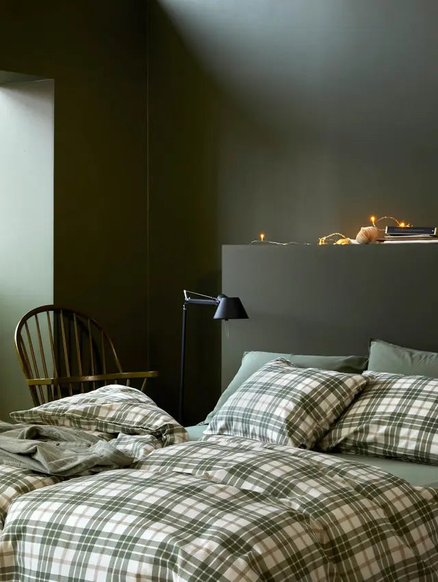 Hoie Lukas flanellipussilakanasetti, vihreässä sävyssä, tuo makuuhuoneeseen metsäisen ja rustiikin tunnelman yhdistettynä ajattomaan muotoiluun. Klassinen ruutukuosi pehmeäpintaisessa vihreän, beigen ja valkoisen sävyissä luo tasapainoisen ja kutsuvan ilmeen, joka sopii sekä moderniin että perinteiseen sisustukseen.