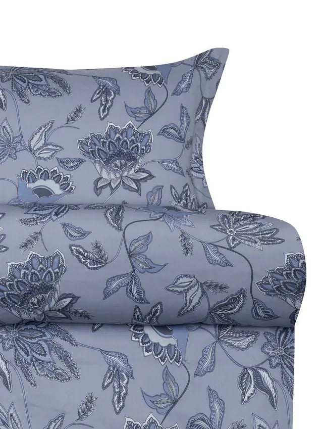 Hoie Mille -satinipussilakanasetti denimin sinisessä sävyssä tuo makuuhuoneeseesi rauhallisen ja ylellisen tunnelman. Kankaana käytetty sileää ja laadukasta satiinia, joka on valmistettu erittäin ohuista ja pitkäkuituisista puuvillakuiduista. Tämä tarjoaa iholle silkinpehmeän, kiiltävän ja miellyttävän kosketuksen. Setin elegantti kukkakuviointi, puutarhan inspiroima, antaa huoneelle miellyttävän eloisan ja raikkaan tunnelman.
