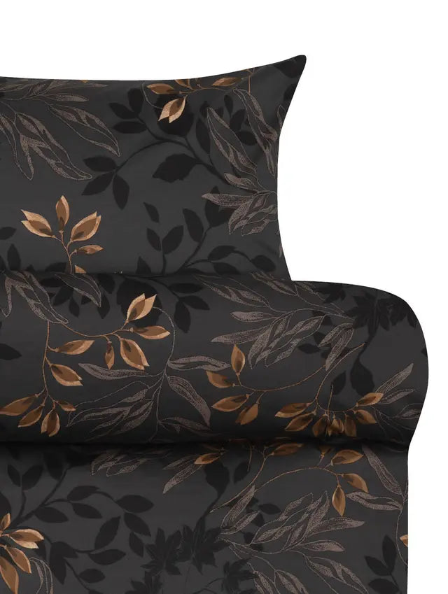 Hoie Nadja -satiinipussilakanasetti mustassa sävyssä yhdistää hienostuneen lehtikuosin ja rauhoittavan tummuuden luoden sisustukseen harmonista eleganssiutta. 100 % puuvillasta valmistettu satiinikangas on valmistettu käyttäen vain hienointa ja pitkäkuituisinta kuitua. Tämä antaa tuotteelle ylellisen kiillon ja äärimmäisen pehmeän kosketuksen.