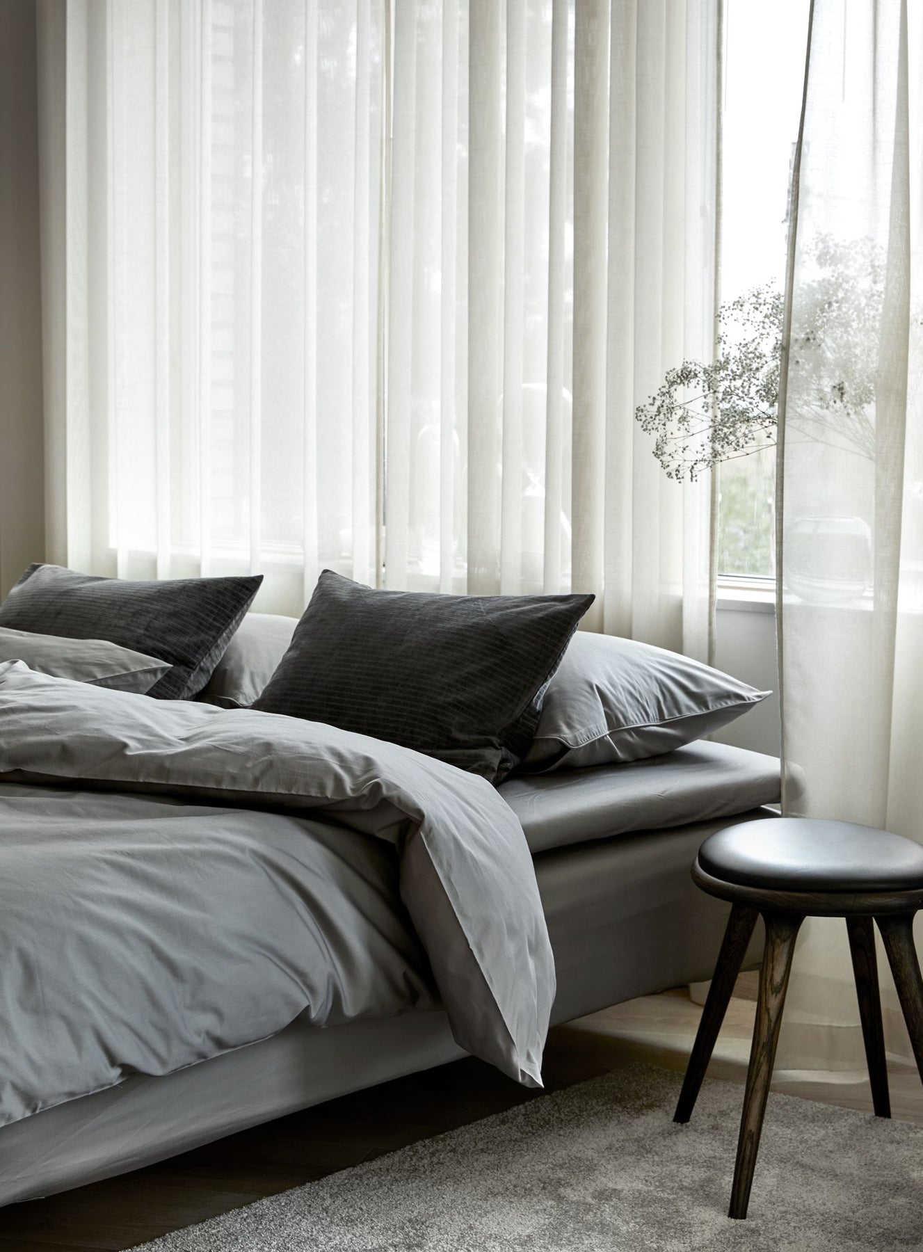 Syvän harmaa väri tuo makuuhuoneeseen tyylikästä rauhanomaisuutta, joka rauhoittaa niin mielen kuin kehonkin. Väri on helppo yhdistää kaikentyylisiin makuuhuoneisiin.
