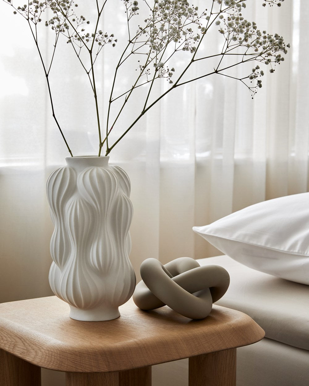 Valkoinen väri tuo makuuhuoneeseen tyylikästä ja raikasta vivahdetta, joka rauhoittaa niin mielen kuin kehonkin. Väri on helppo yhdistää kaikentyylisiin makuuhuoneisiin.