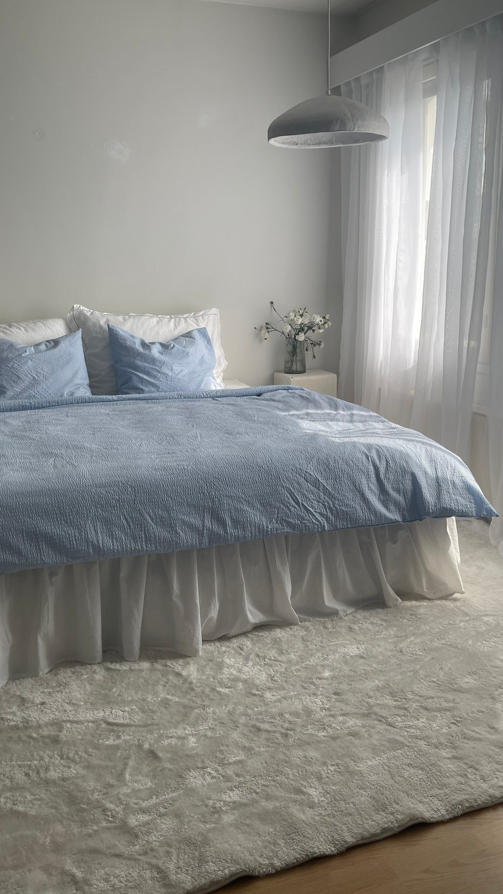 - Raikas kesäinen sävy – vaaleansininen tuo ripauksen rantatunnelmaa makkariin, sopii hyvin kevääseen ja kesään