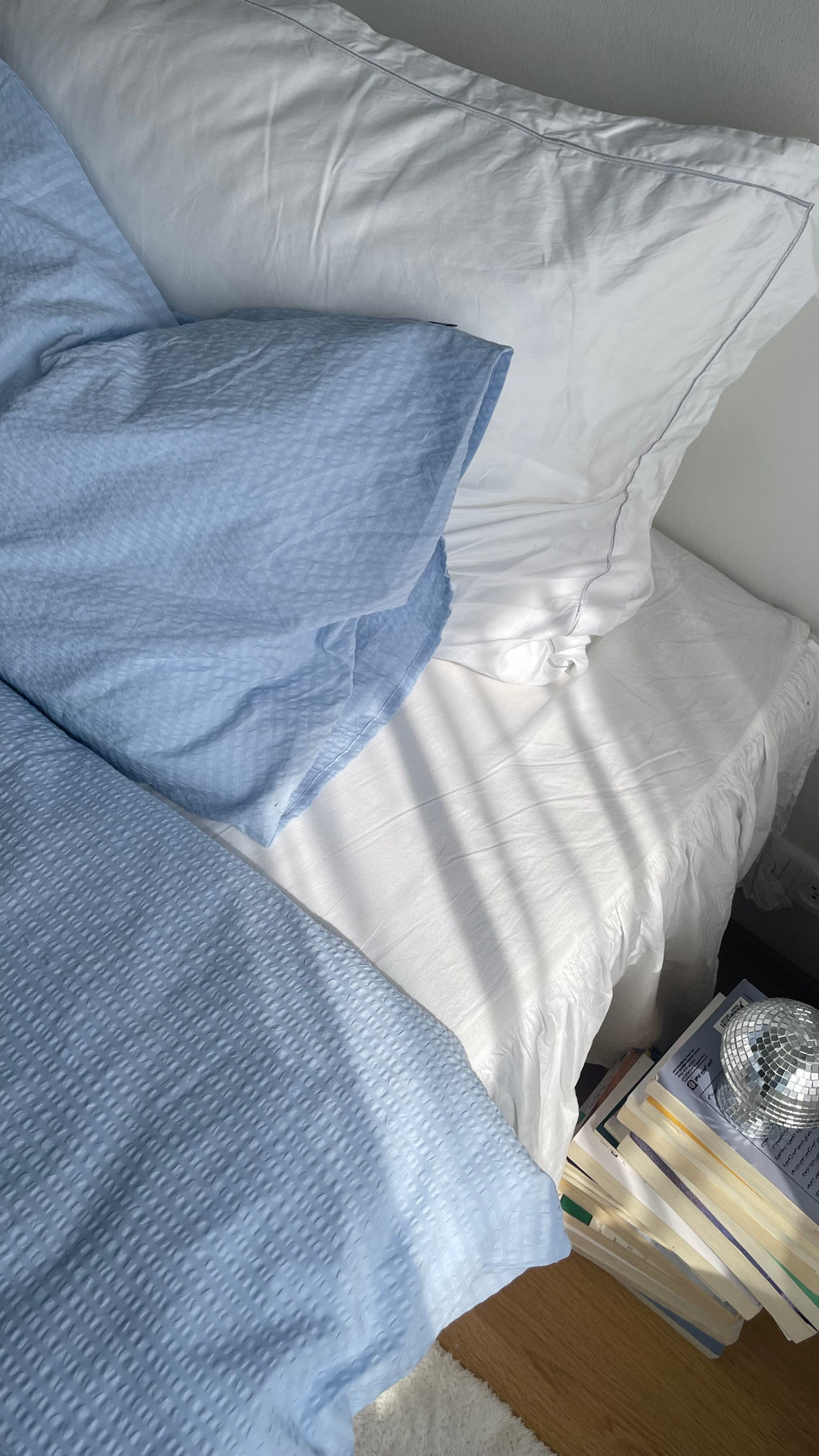- Ihoa viilentävä kreppitekstuuri – 100 % puuvillaa, joka tuntuu tuoreelta ja ilmavalta myös lämpiminä öinä
