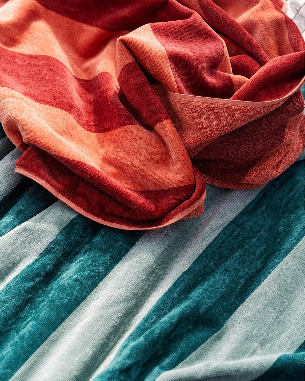 - Tyylikäs raidallinen design – raikas ja moderni ilme, joka sopii rannalle ja kylpyhuoneeseen