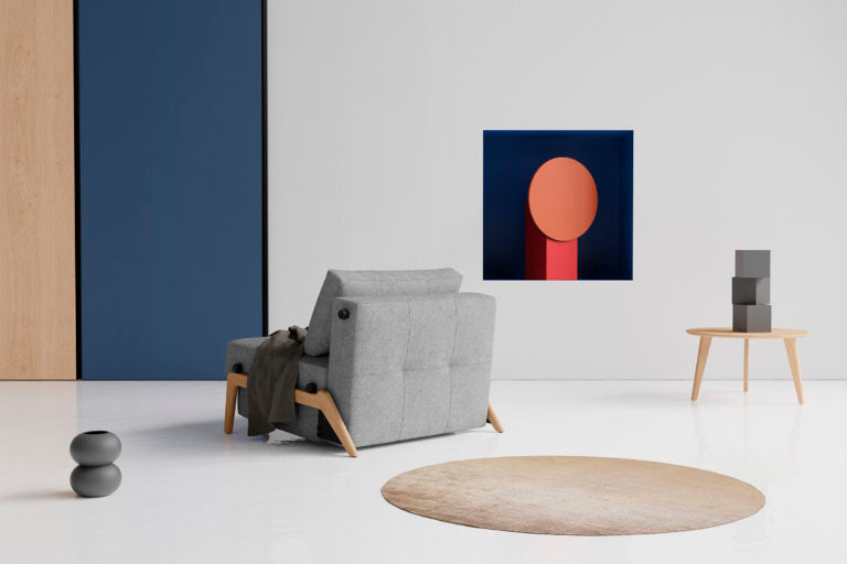 Cube-90 -vuodetuoli on tyylikäs ja mukava nojatuoli, jossa on helppokäyttöinen vuodemekanismi.