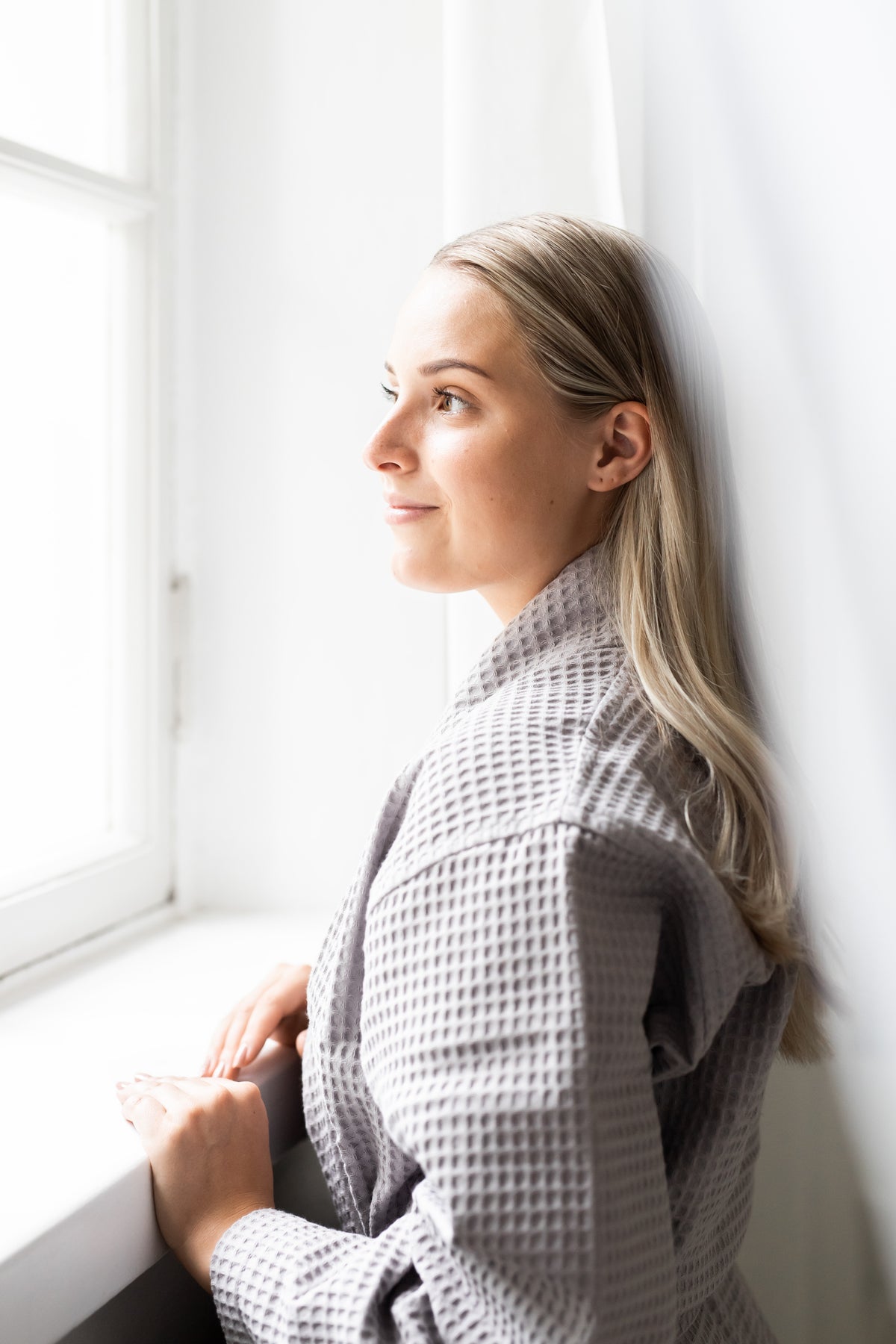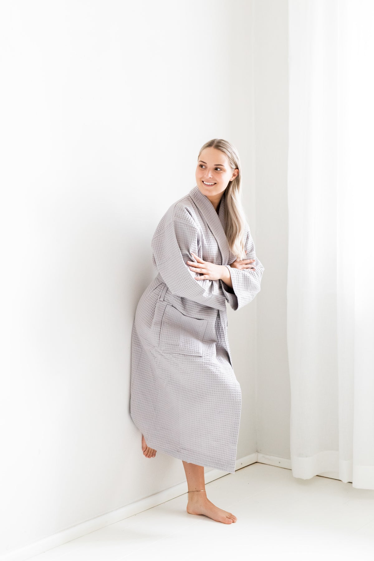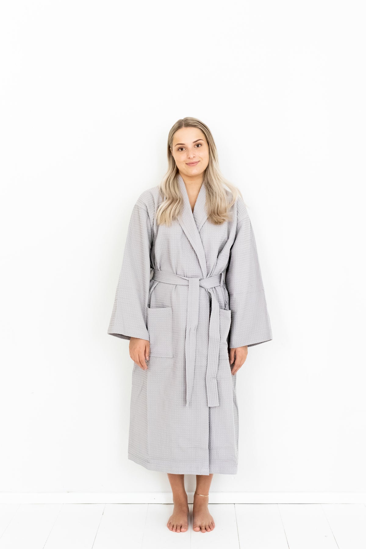 Onko mitään rentouttavampaa kuin herätä, niin arkena kuin viikonloppunakin, ja laittaa päälle miellyttävän pehmeä ja kevyt aamutakki matkalla keittiöön aamukahvin pariin. Tällä takilla mieleen palaa varmasti ihanat lomahetket, sillä vastaavia vohvelikylpytakkeja on suosittu luksushotelleissa jo vuosikausia. Nyt sinulla on mahdollisuus tuoda tämä luksus myös omaan kotiisi!
