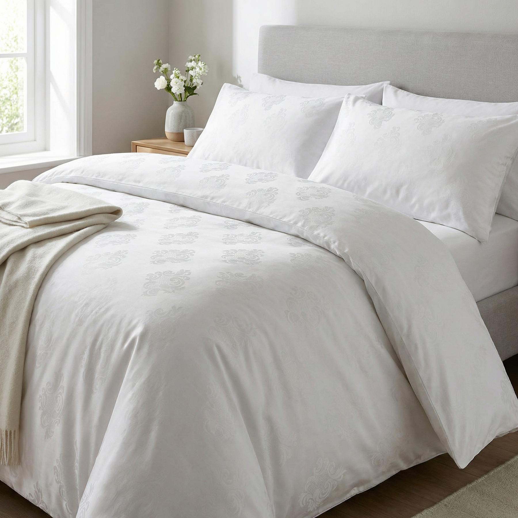 Elegant pure white with woven classic Jacquard patterns