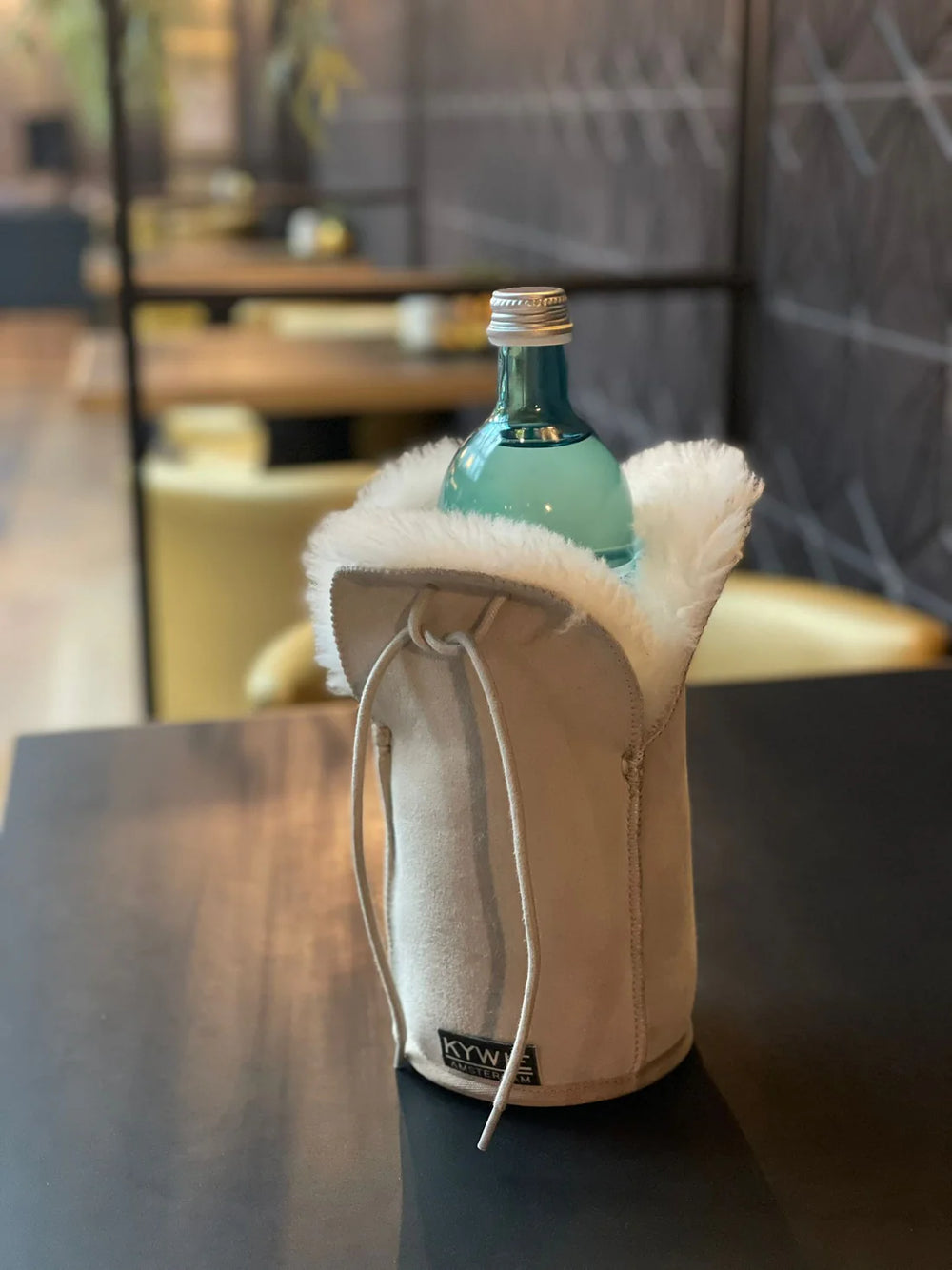 KYWIE shampanja cooler pitää arvokkaat juomat viileinä jopa tuntien ajan kesähelteellä, kiitos erittäin hyvän eristyskyvyn omaavan 100% lampaannahan ja -villan. Näyttävä ja uniikki cooler nousee varmasti juhlien keskustelun aiheeksi!