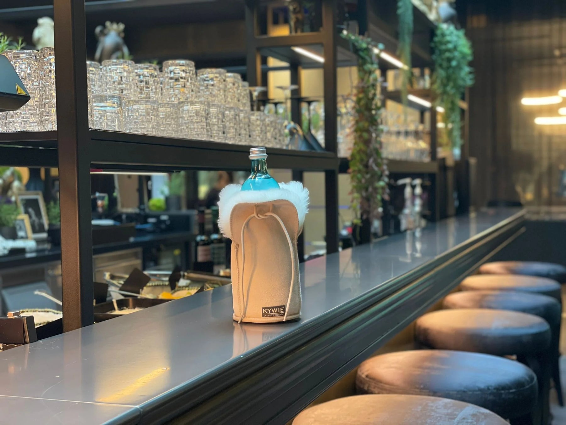KYWIE shamppanja cooler on Texel-lampaannahasta valmistettu cooler, joka pitää kylmän shamppanjapullosi viileänä 4 tunnin ajan jopa kesähelteellä. Lämmöneristyksen kruunaa kaulalle asettuva tiukka villainen "ilmalukko", joka estää viileän ilman karkaamisen kaulaa pitkin. Cooleriin yhdistetty kantohihna helpottaa kantamista esimerkiksi piknikille. Villa on luontaisesti likaahylkivä, joten coolerin käyttö ja huolto on helppoa ja huoletonta. Cooler toimii myös tyylikkäänä suojana pullolle yllättäviltä kolhuilta.