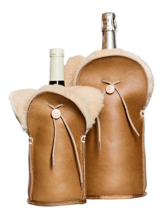 Kevyt ja kokoon taitettava shamppanja cooler valmistetaan 100 % aidosta lampaan nahasta, joten siinä voi esiintyä luontaista värin ja pintakuvion vaihtelua. Tämä takaa, että jokainen tuote on oma upea yksilönsä. Suosittu lahjaidea hänelle, jolla on jo kaikkea!