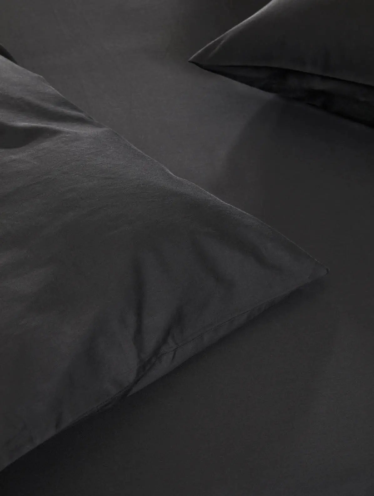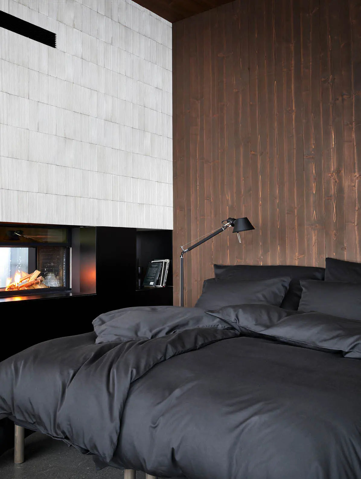 Harmoni är Høies mjukaste satin, tillverkad av 100 % bomull. Sängkläderna är stentvättade, vilket gör tyget extra mjukt och ger det ett lugnt, matt utseende. Den svarta tonen ger djup till sovrummet och skapar en fridfull atmosfär.