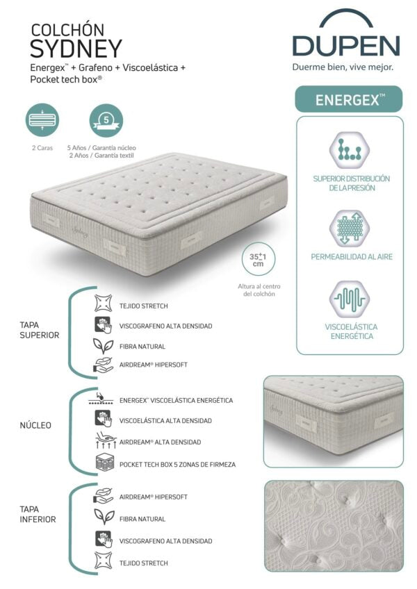 Sydney är en innovativ och unik madrass som representerar Dupens senaste produktion.