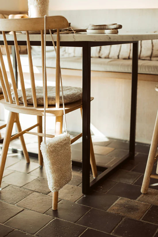 - Käsintehty Hollannissa 100 % lampaanvillasta ja -nahasta